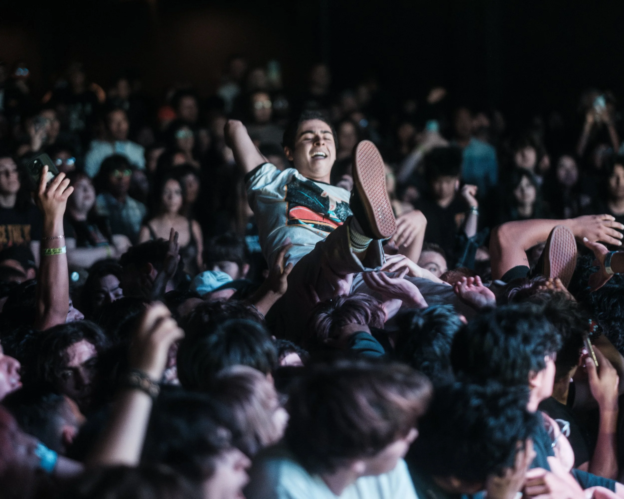 Free Throw sold out The Observatory in Santa Ana on a Thursday night. The Nashville quintet's sixth record Moments Before the Wind, out now on Wax Bodega, is their most mature work yet, a record about liminality, loss, and the particular vertigo of life in transition, and live, that emotional weight landed. Frontman Cory Castro led the room through gang vocals all night. Crowd surfers every song. This is stop twelve of a five-week North American run.