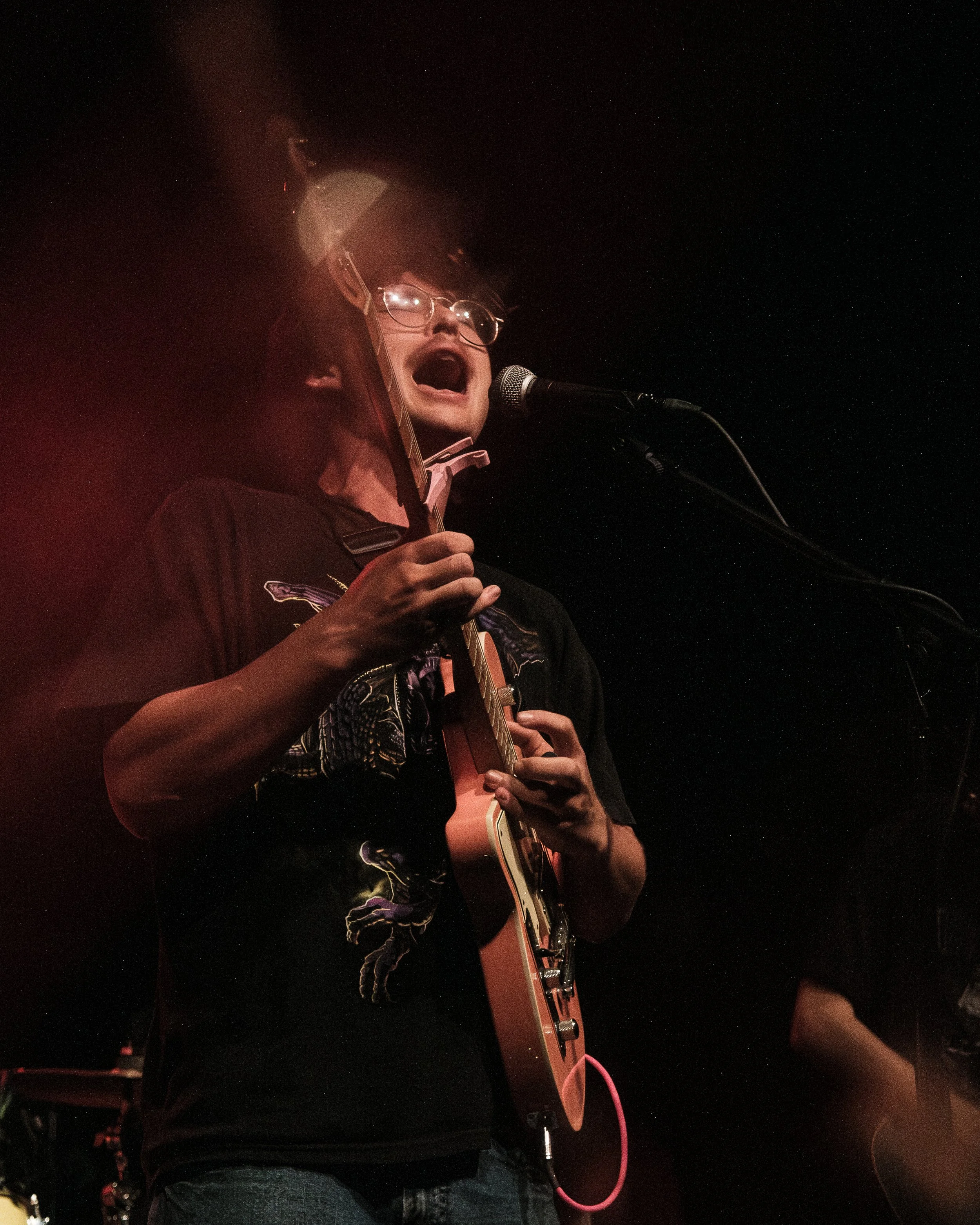 Wakelee opened the night and pulled the crowd in immediately. The Brooklyn trio, identical twins Alex and David Bulmer alongside Elliot Shiang, brought emo-tinged indie warmth to the room. Gabe, their trombone player, hitting the nostalgia hard. They are currently putting the finishing touches on their second full-length record.