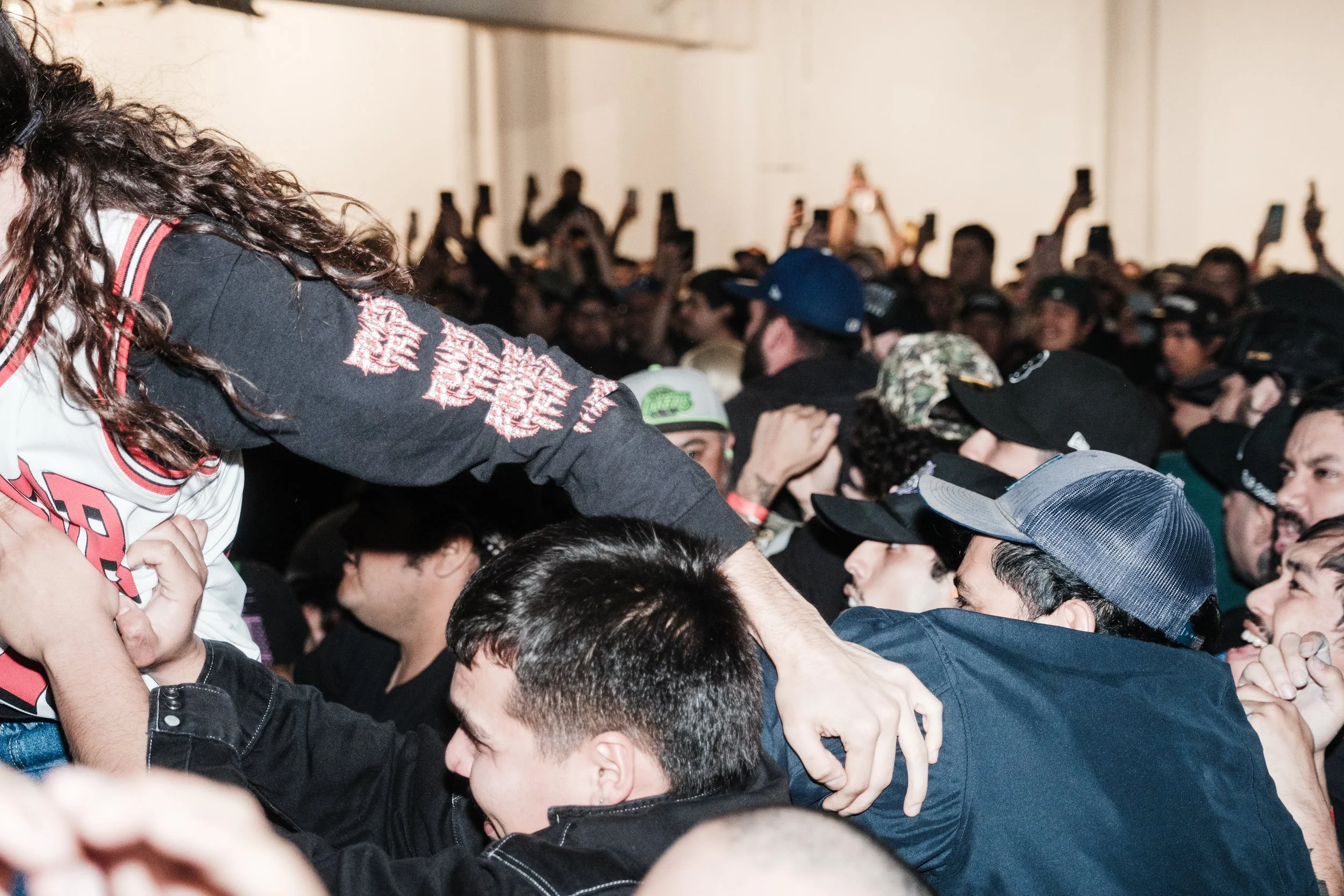 Terror played three songs. Ten minutes of chaos. Stage dives. Two-stepping. One kid jumped off the rafters. They closed with "Stick Tight" and the room exploded. Formed in Los Angeles in 2002, Terror has spent over two decades as one of the most uncompromising forces in American hardcore, and this room felt every single one of those years. They return to Los Angeles and Pomona on May 7th and 8th.